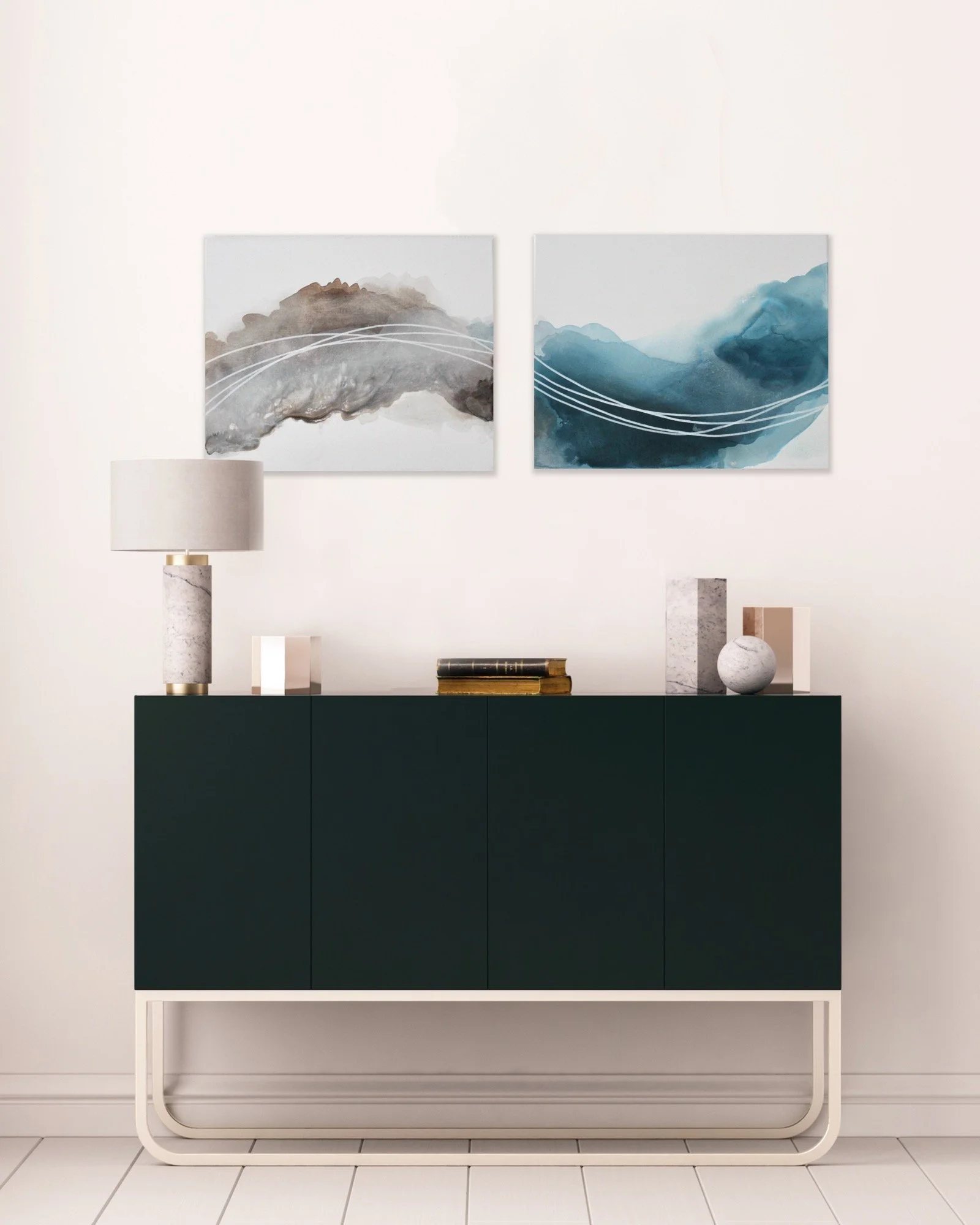 Der Wunsch der Kundin war ein Werk, das ihre Liebe zu den heimischen Bergen, sowie zum irischen Meer widerspiegelt. Gemeinsam haben wir an Entwürfen gearbeitet bis das Endergebnis in sorgfältiger Arbeit auf Leinwand gebracht wurde.