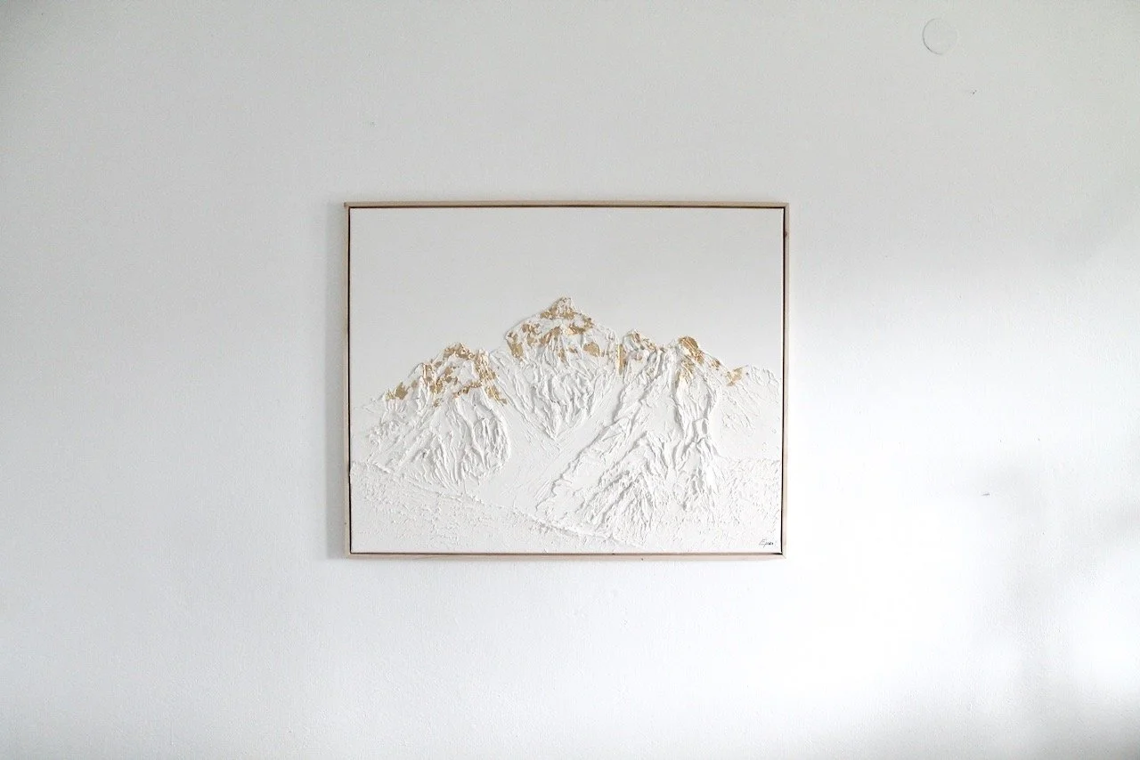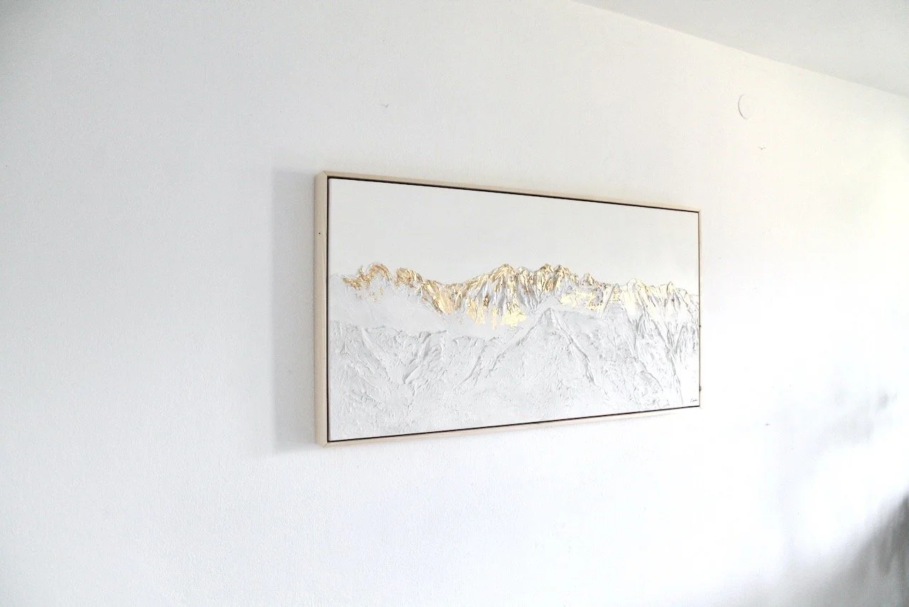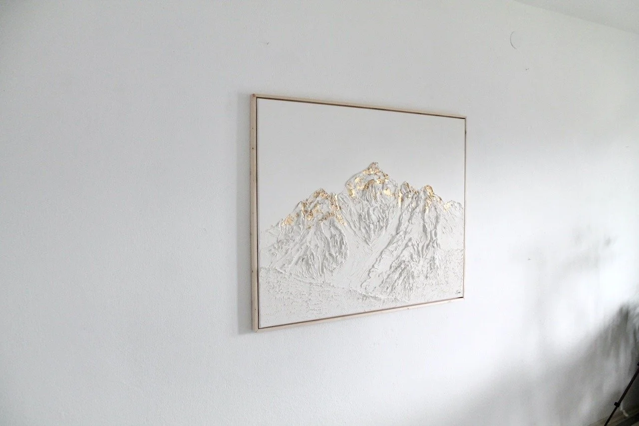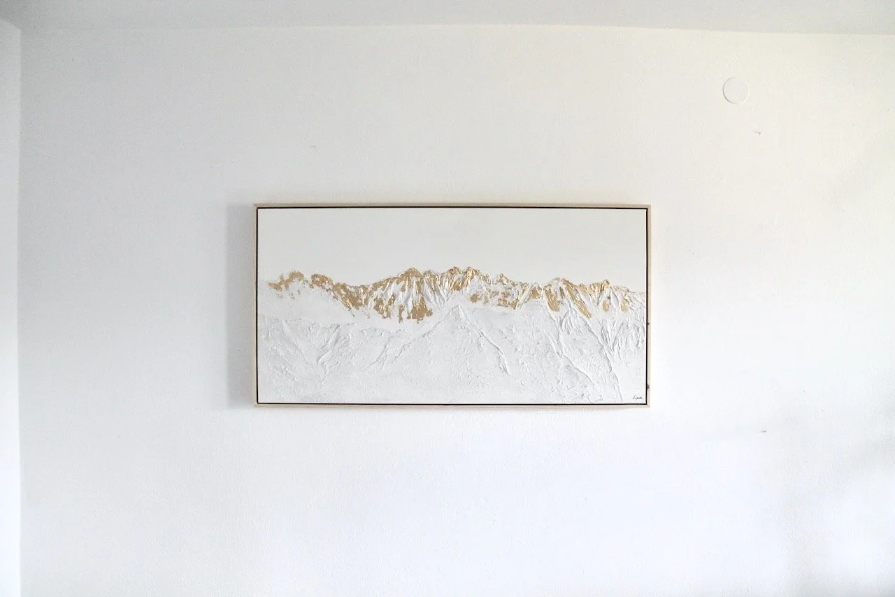 Diese Kollektion spiegelt meine tiefe Verbundenheit zu den heimischen Bergen wieder. Auf meinen Reisen und Auslandsaufenthalten vermisste ich stets eines am meisten: die Berge Tirols. Um ein Stück Heimat oder Sehnsucht in die Wohnzimmer meiner Kunden zu bringen, habe ich mich verschiedenen Bergmotiven gewidmet und sie auf Leinwand modelliert.