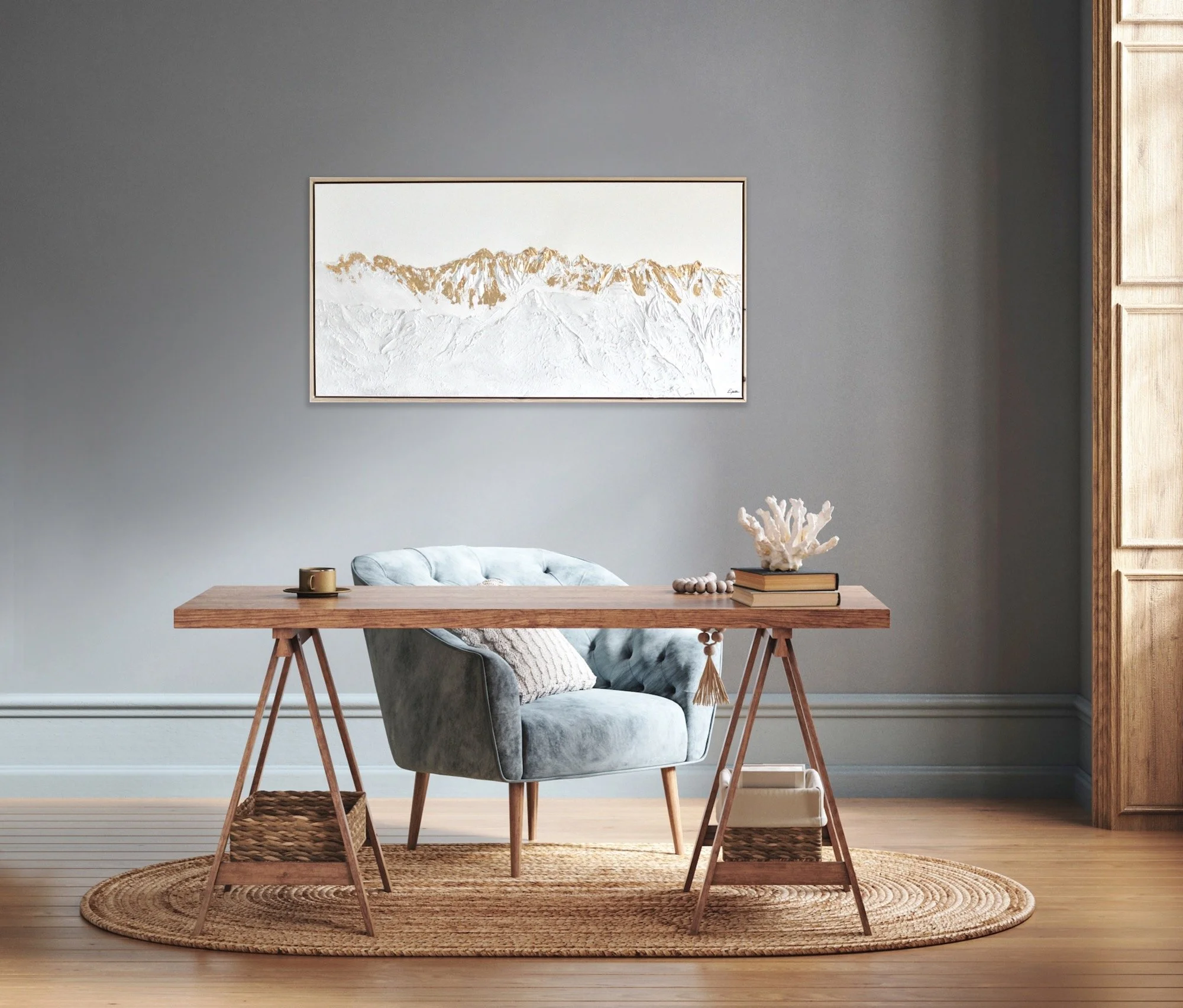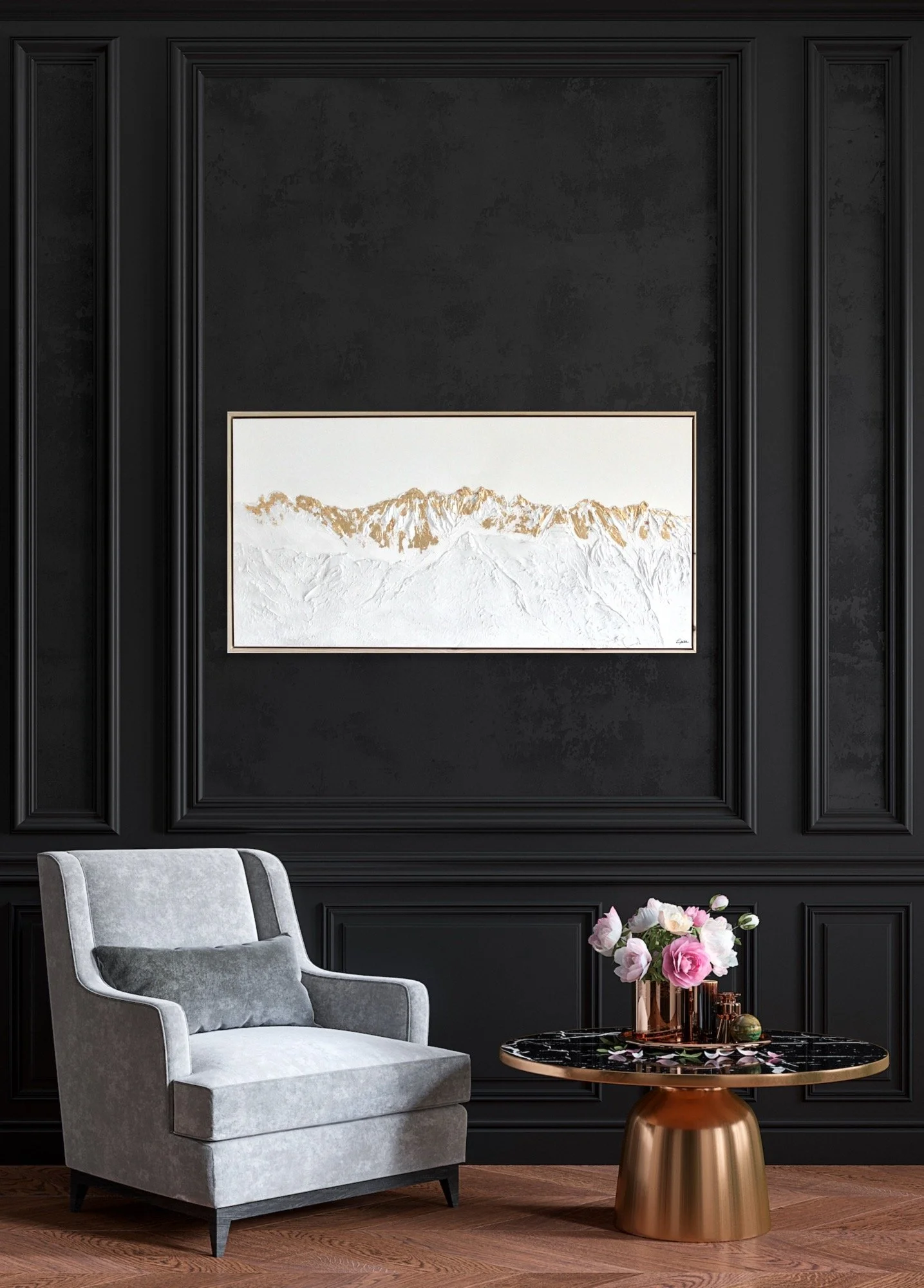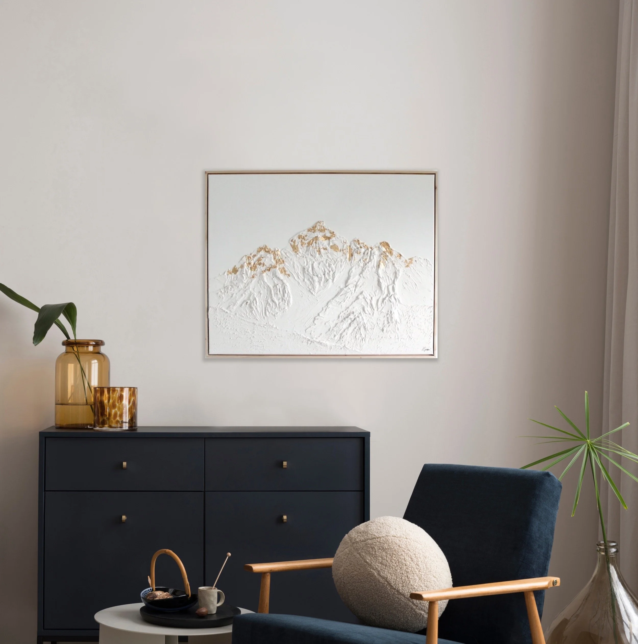 Diese Kollektion spiegelt meine tiefe Verbundenheit zu den heimischen Bergen wieder. Auf meinen Reisen und Auslandsaufenthalten vermisste ich stets eines am meisten: die Berge Tirols. Um ein Stück Heimat oder Sehnsucht in die Wohnzimmer meiner Kunden zu bringen, habe ich mich verschiedenen Bergmotiven gewidmet und sie auf Leinwand modelliert.