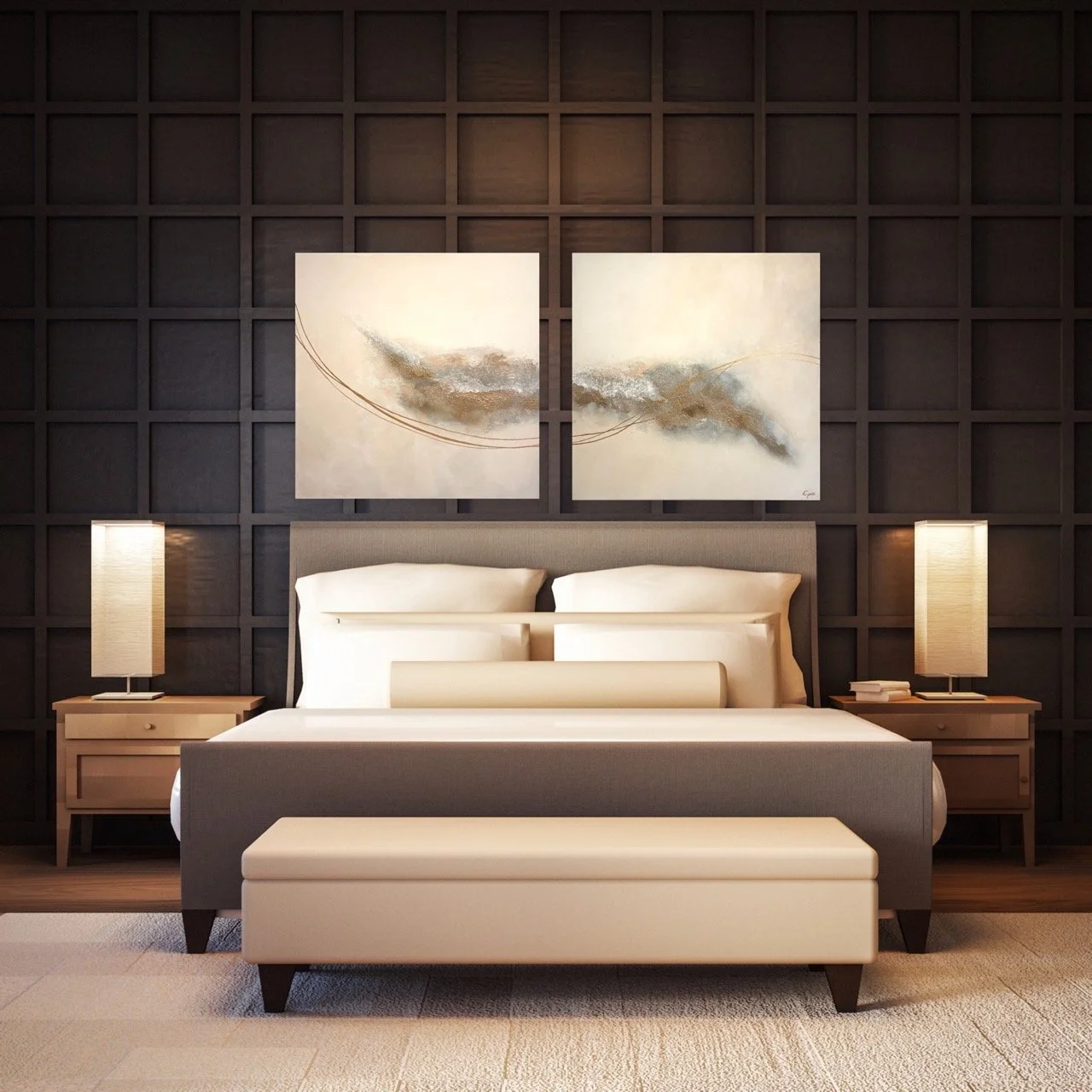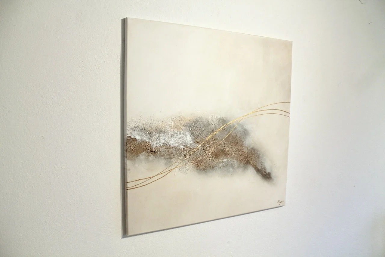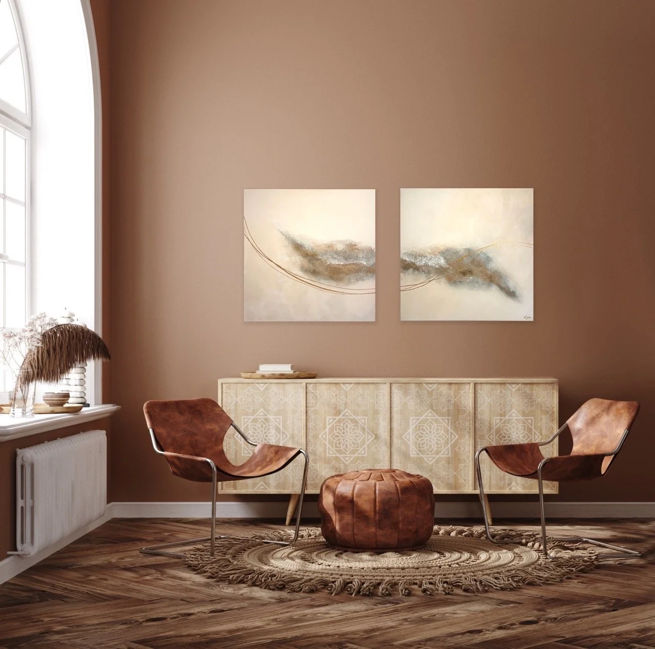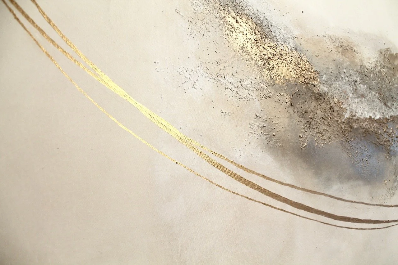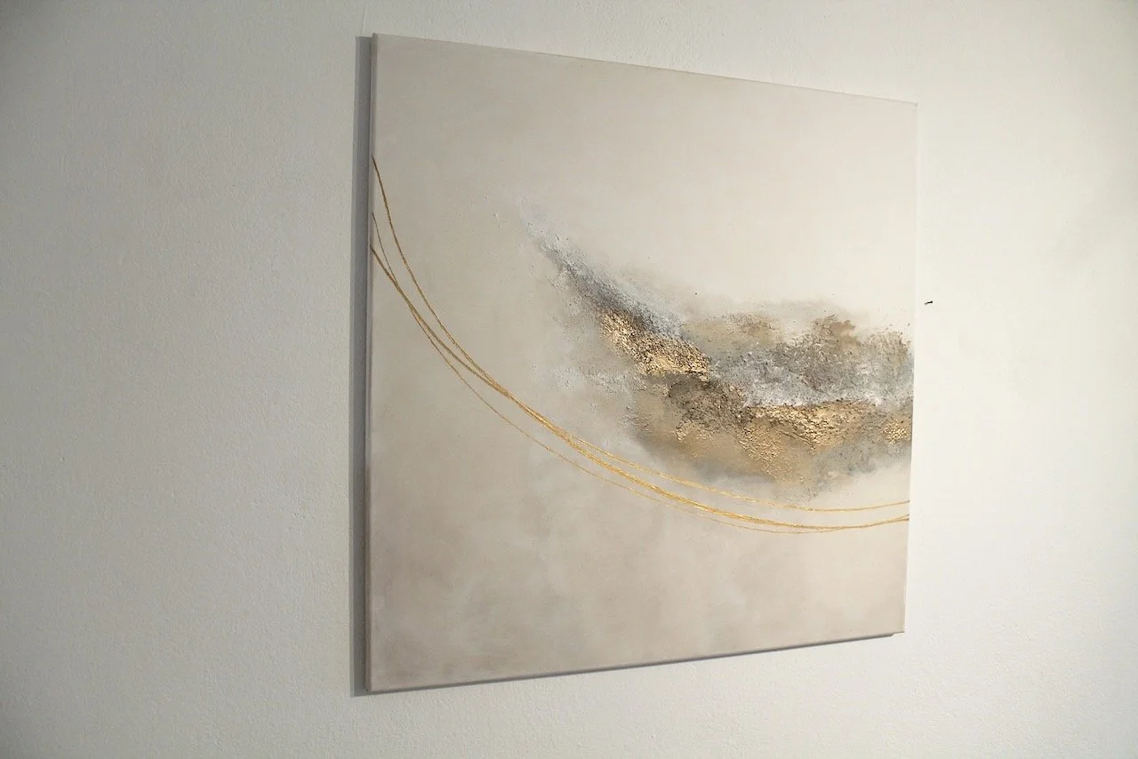 Zentrales Element dieser Kollektion sind die klaren Linien, die sich in verschiedenen Formen auf jedem Bild harmonisch einfügen. Wellen, Kreise und Rechtecke treffen auf weiche Texturen und erzeugen so eine einzigartige visuelle Spannung. Diese Mischung aus präzisen Formen und weichen Texturen lädt den Betrachter ein, die kunstvolle Balance zwischen Ordnung und Freiheit zu erleben.